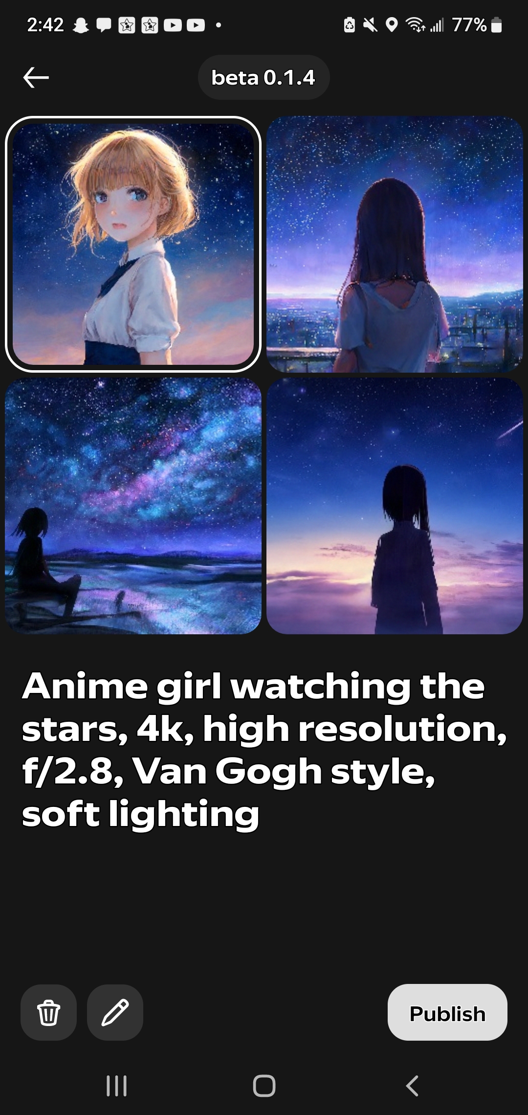 You may choose your favorite image and publish it! You can discard or change the description if you wish